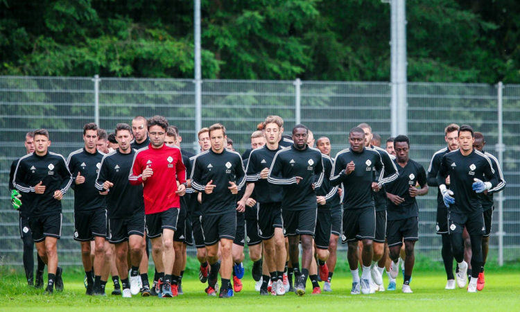 นักเตะโอเอช ลูเวิน 31 คน (ผู้เล่นเอาท์ฟิลด์ 27 คน และผู้รักษาประตู 4 คน) ฝึกซ้อมที่สนามของสโมสร วีวี…