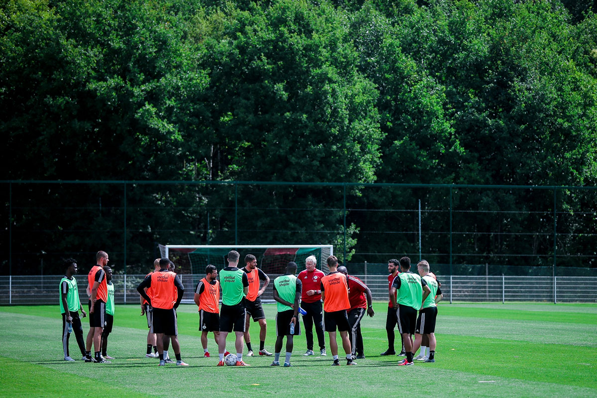 มาร์ค บรีส์ ผู้จัดการทีมคนใหม่ของโอเอช ลูเวิน นำลูกทีมลงฝึกซ้อมครั้งแรกที่สนามคอร์บีคดาร์มสตรัท