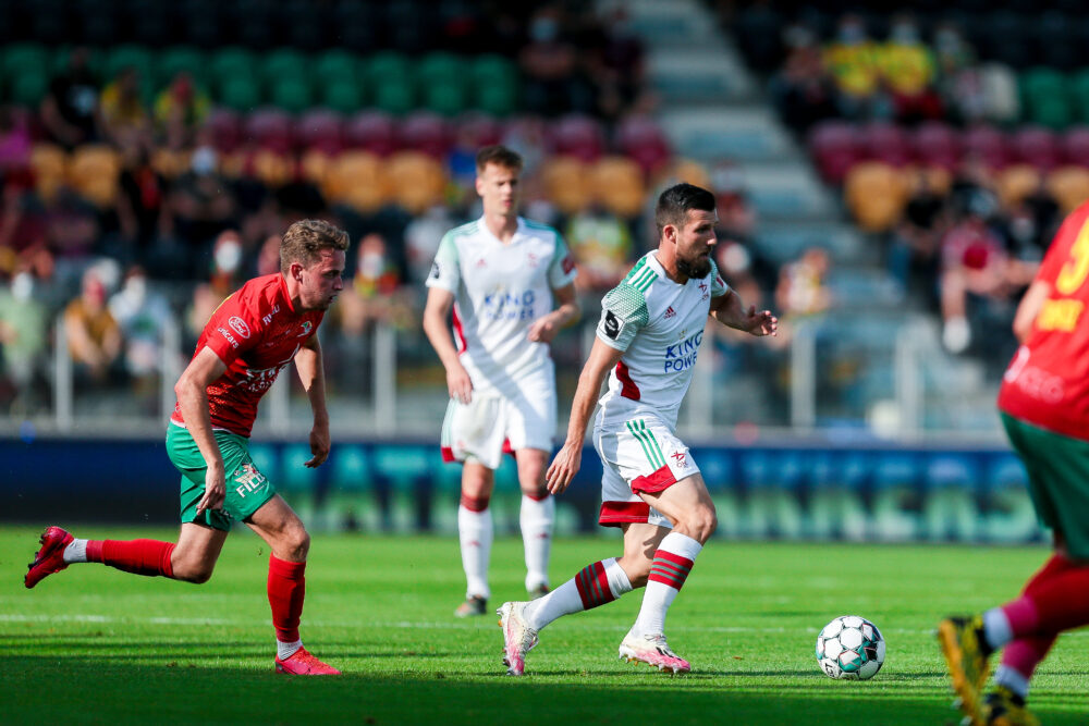 เจ้าถิ่นออสเทนเด้ มาได้ประตูออกนำไปก่อนในนาทีที่ 26 เมื่อ แอนดรูว์ ฮัลจ์เซเกอร์ สับขาหลอกแล้วล็อคหลบ บานาร์บาส เบเช่ ถึงเส้นหลังแล้วตบเข้ากลางเรียด ๆ ให้กับ จูเนียร์ แฟชั่น ซาคาล่า ยิงเข้าประตูไปง่าย ๆ ให้เจ้าบ้านนำแล้ว 1-0